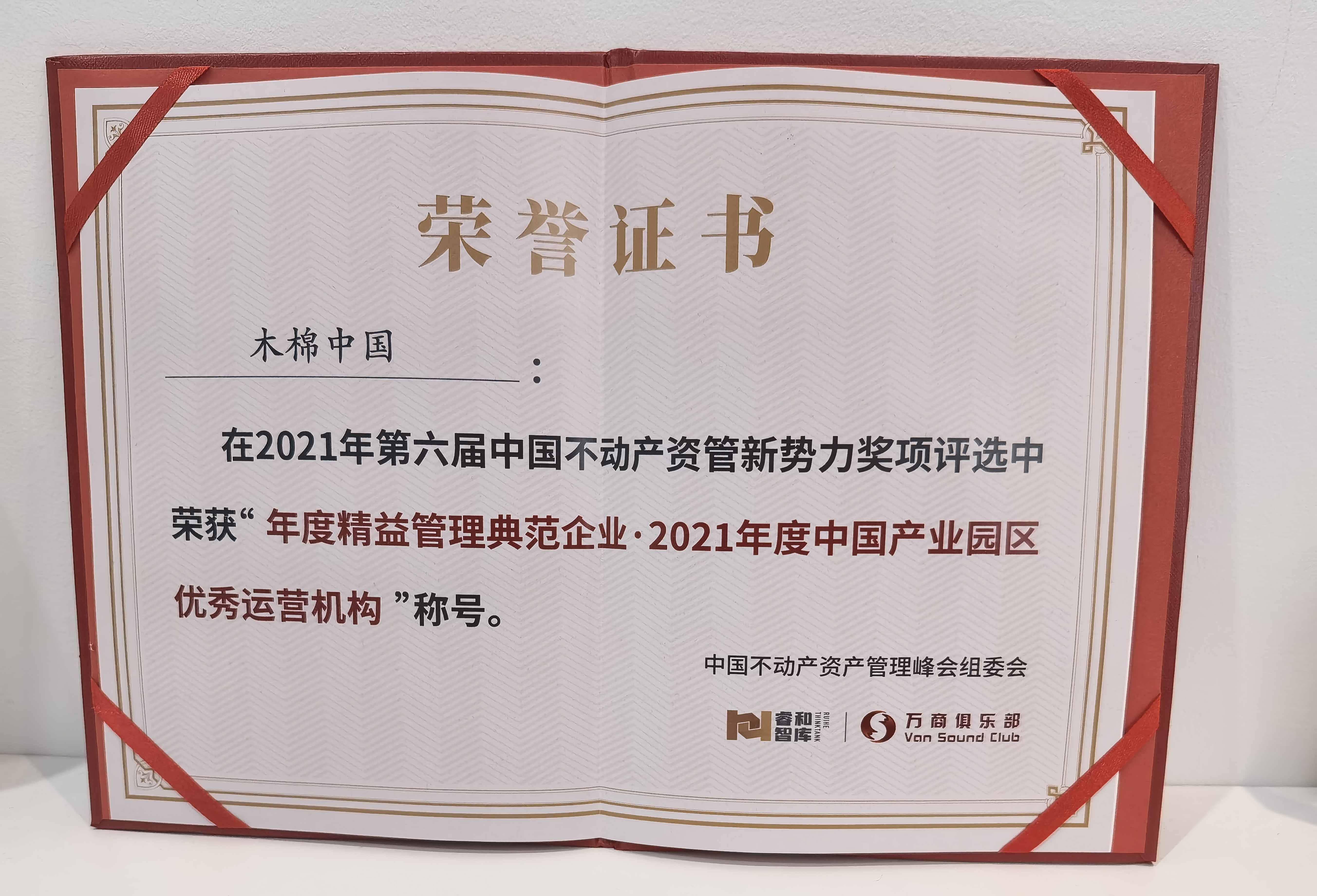 2021中国商业地产企业100强证书2021年度中国产业园区优秀运营机构(中国不动产资管峰会)
