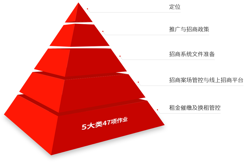 驻场代理机构的开发/招商目标的设定与跟踪/日常管理与招商人员培训/与客户进行商务谈判/客户的入驻手续办理/招商中心环境管理/招商案场突发事件的处理/PC端与移动端招商管理平台的开通及维护等